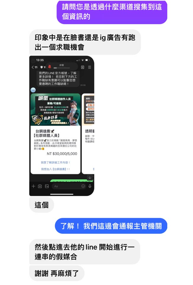 原文出處:【想找工作卻遇到詐騙】受害者差點把錢交出去,向求職網站 Yourator 查證揭詐騙手法