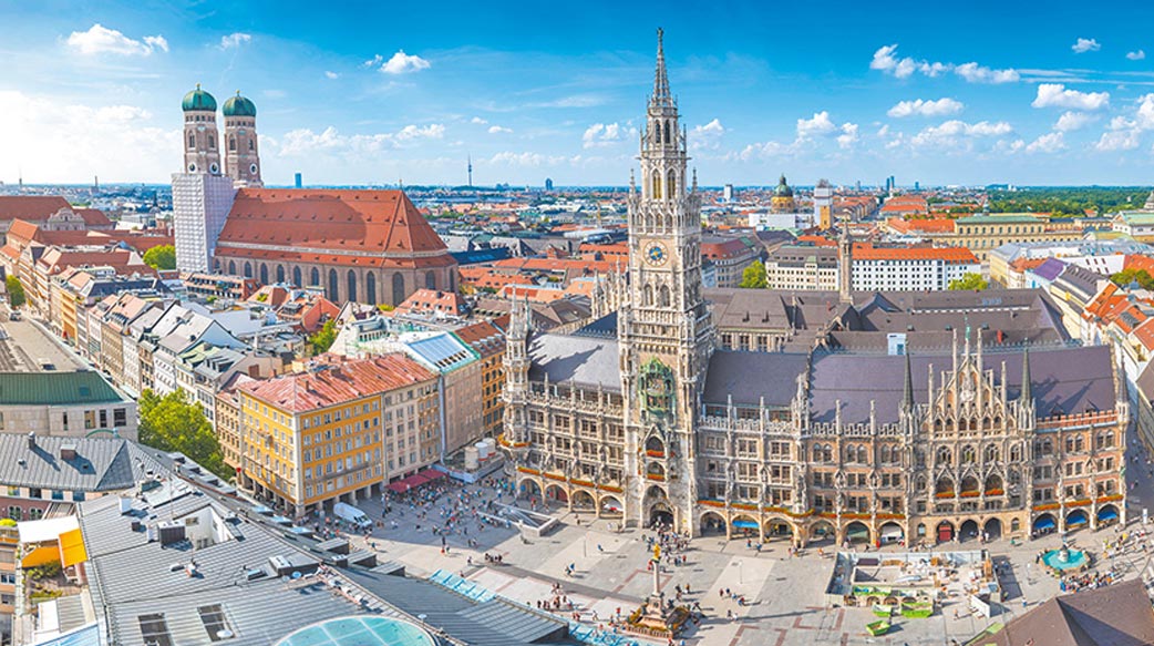 12世紀形成的瑪利亞廣場(Marienplatz),名稱源自17世紀的三十年戰爭。當時信奉新教的瑞典國王突然自慕尼黑撤軍,倖免於難的舊教居民相信這場「慕尼黑奇蹟」是出於聖母馬利亞護佑,故建圓柱紀念。
