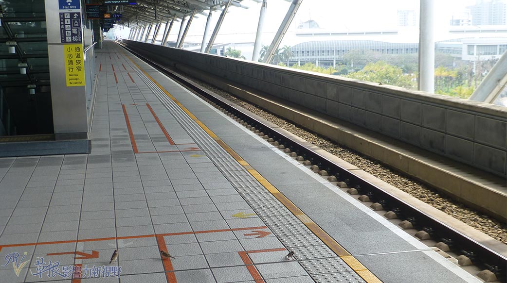 但我在上班日的下午到達,列車離站後卻看到幾隻麻雀在月台邊漫步,看起來像排隊等車,讓我聯想到華語成語「門可羅雀」形容冷清沒人潮,很難想像近年新聞報導每到連假,常有大批乘客擠滿台中高鐵站月台,搶著搭車的畫面,在想真相會不會是大部分民眾薪資偏低,為省錢只在返鄉及出遊,才會搭票價高的高鐵?