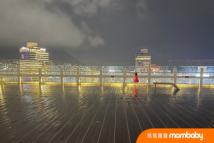 我帶姊弟倆去釜山樂天百貨的景觀天台,那是一片很大的高空廣場,可以俯瞰釜山的港口跟夜景。因為接近關門時間,人煙稀少,加上護欄超級高,所以,讓小孩探索到比較遠的距離,不當亦步亦趨的煩人爸爸,只要在視線範圍就好。