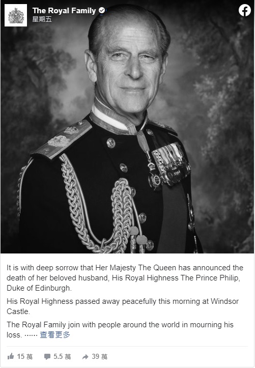 菲立普親王原本將在六月迎接百歲生日,作為英國女王的丈夫,他是60多年的英國君主代言人之一,是陪伴英國君主時間最長的配偶,不過他在2017年退休,屆時不再負責出席王室公眾活動的職責。